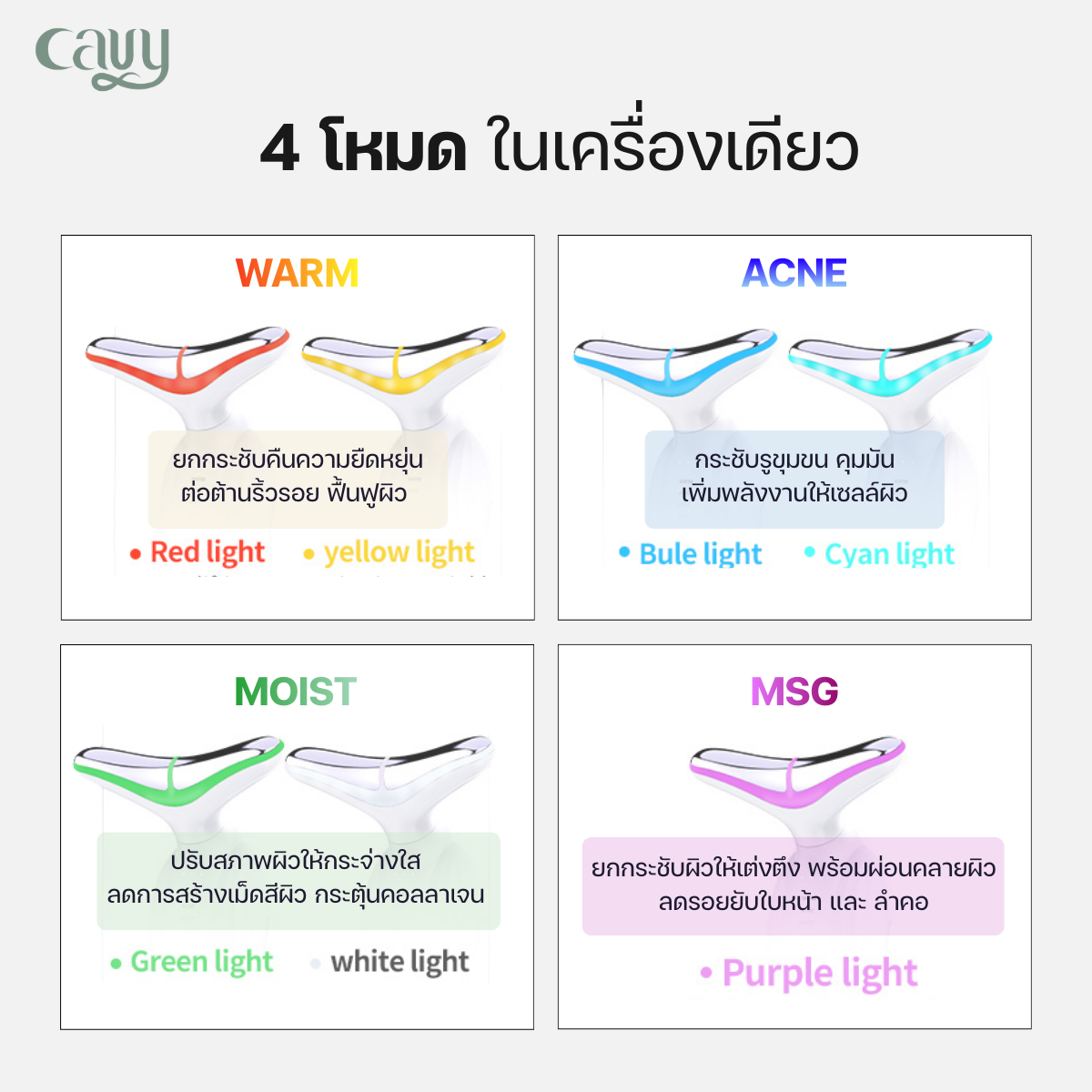 - โหมด Acne รักษาสิว (แสงสีน้ำเงิน + แสงสีฟ้า)